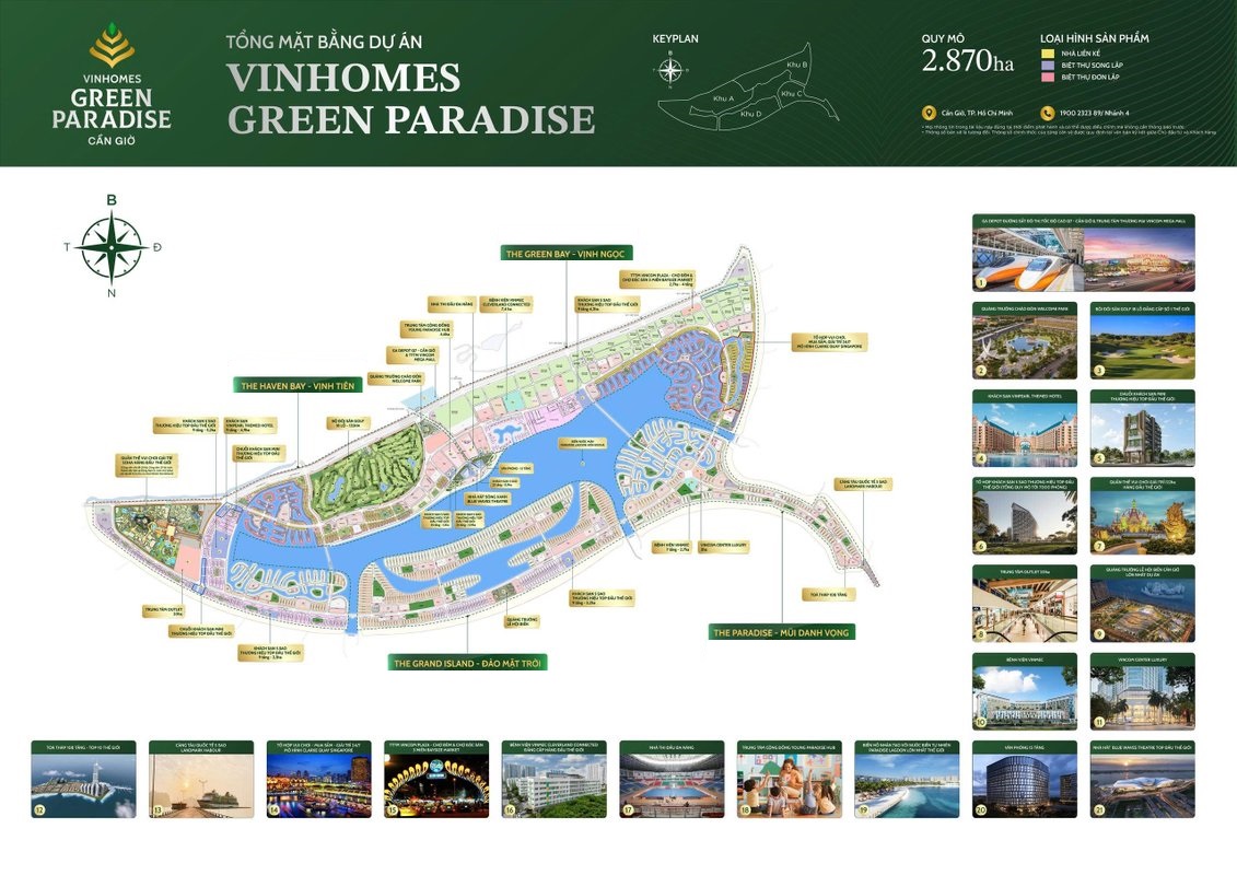 Với bốn phân khu mang bốn sắc thái riêng biệt, Vinhomes Green Paradise Cần Giờ không chỉ là nơi an cư, nghỉ dưỡng mà còn là điểm đến quốc tế cho đầu tư, thương mại, giải trí và tài chính.