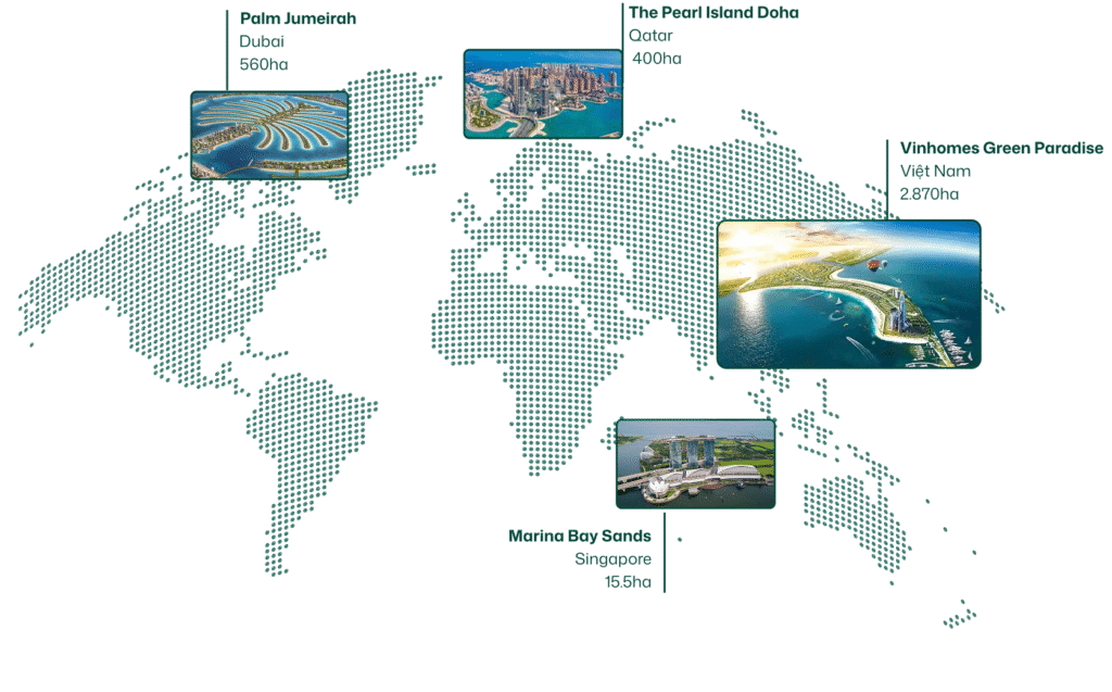 Vinhomes Green Paradise (hay còn được biết đến là Vinhomes Cần Giờ) là siêu đô thị lấn biển quy mô lớn do Tập đoàn Vingroup đầu tư tại khu dự trữ sinh quyển rừng ngập mặn Cần Giờ, TP.HCM. Dự án có tổng diện tích khoảng 2.870 ha, với tổng mức đầu tư ước tính hơn 10 tỷ USD, được quy hoạch theo triết lý ESG++ – Xanh, thông minh, sinh thái và tái sinh. Hướng đến mô hình đô thị bền vững, nơi con người hòa hợp cùng thiên nhiên và công nghệ, Vinhomes Green Paradise được đánh giá là “Siêu đô thị lấn biển ESG++ hàng đầu thế giới” khẳng định tầm vóc tiên phong của Việt Nam trong xu hướng phát triển đô thị tương lai.